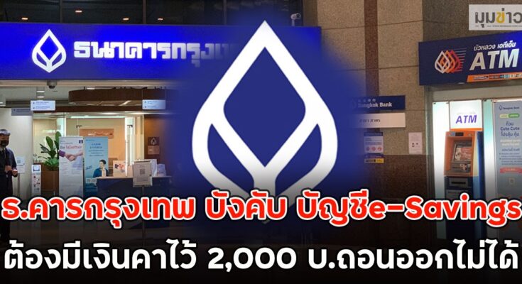 วันที่ 9 มีนาคม แบงก์กรุงเทพ ออกกฎ บัญชี e-Saving โดยระบุว่า ตั้งแต่วันที่ 9 เมษายน 2569 เป็นต้นไป ลูกค้าทุกรายต้องมียอดเงินคงเหลือในบัญชีขั้นต่ำ 2,000 บาท ลูกค้าไม่สามารถทำรายการถอน/โอน หรือธุรกรรมอื่นใดที่ส่งผลให้เงินออกจากบัญชี จนทำให้ยอดเงินคงเหลือในบัญชีต่ำกว่า 2,000 บาทได้ ยกเว้น (1)