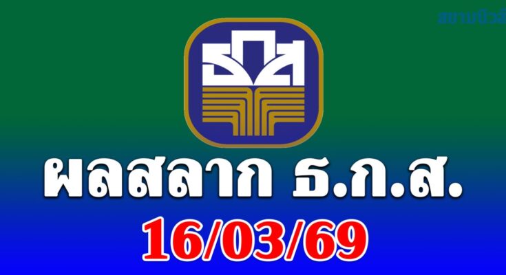 สลากออมทรัพย์ ธ.ก.ส.ชุดหยกจักรพรรดิ ครั้งที 13 สลาก ธ.ก.ส. ชุดถุงทอง ครั้งที่ 28 สลากออมทรัพย์ ธ.ก.ส. ชุดขุนแผนมรกต ครั้งที่ 4 สลากออมทรัพย์ทวีสิน ชุดเกษตรมั่นคง 4 ครั้งที่ 35 ชุดมรกต ครั้งที่ 18 ชุดถุงเงิน ครั้งที่ 20 ชุดมังกรหยก ครั้งที่ 9 สลากดิจิทัล ธ.ก.ส. ครั้งที่ 39 และสลากออมทรัพย์ ธ.ก.ส. ชุดขวัญถุง ครั้งที่ 22 ประจำวันที่ 16 มีนาคม 2569