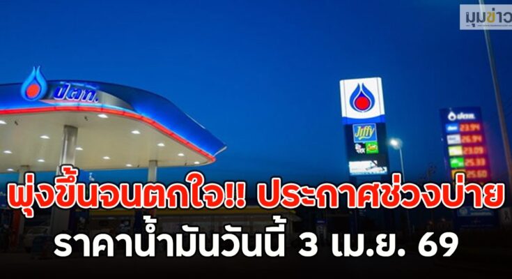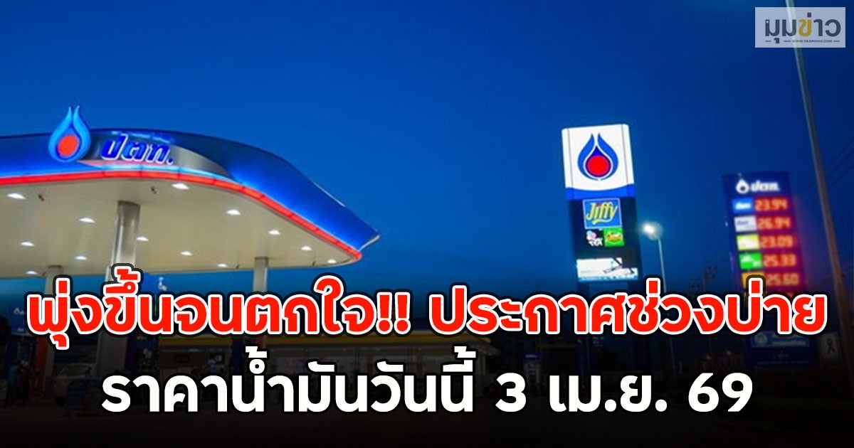 (3 เม.ย. 69) ปตท. บางจากขึ้นราคาเบนซิน แก๊สโซฮอล์ 70 สตางค์ หลังบริษัท ปตท.น้ำมันและการค้าปลีก จำกัด (มหาชน) หรือโออาร์ (OR) และบริษัท บางจาก คอร์ปอเรชั่น จำกัด (มหาชน) หรือ BCP ประกาศปรับราคาน้ำมันเบนซิน แก๊สโซฮอล์ 95-91 รวมถึง E85 และ E20 ขึ้น 0.70 บาทต่อลิตร ขณะที่ราคาน้ำมันดีเซลขึ้น 3.50 บาทต่อลิตร ส่วนดีเซลพรีเมี่ยมขึ้น 4 บาทต่อลิตร