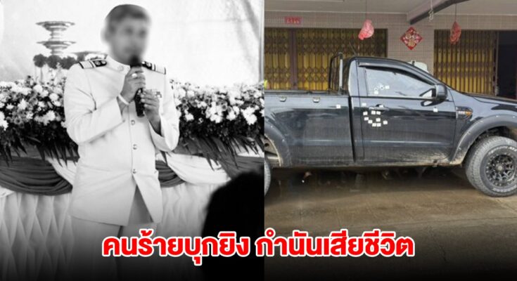 โดยที่เกิดเหตุพบ รถกระบะ ฟอร์ด เรนเจอร์ สีดำ ทะเบียนตรัง สภาพรถถูกยิงเป็นรูพรุนด้วยกระสุนปืน M4 ชนิดเอ็ม 16 ขนาด 5.56 มม. 15 รู อยู่บริเวณประตูฝั่งคนขับ ส่วนคนถูกยิงถูกนำส่ง รพ.ห้วยยอด ก่อนเสียชีวิต เนื่องจากทนพิษบาดแผลไม่ไหว ทราบชื่อ กำนันเล้น อายุ 57 ปี ประธานชมรมกำนันผู้ใหญ่บ้าน อ.ห้วยยอด ถูกยิงเข้าบริเวณโหนกแก้มขวา ลำตัว และนิ้วมือ