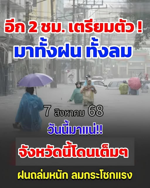 ประกาศแล้ว เปิดรายชื่อ 7 จังหวัด ฝนถล่มหนัก ลมกระโชกแรง