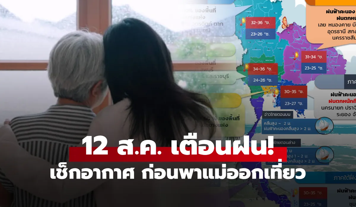 พยากรณ์อากาศ 12 ส.ค. 2568 เตือนฝนตกหนักทั่วไทย เสี่ยงน้ำท่วมฉับพลัน-คลื่นลมแรง