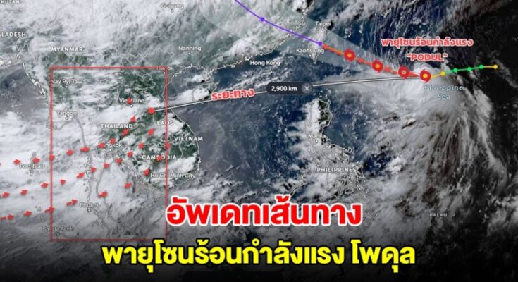 อัพเดทเส้นทาง พายุโซนร้อนกำลังแรง โพดุล กำลังเคลื่อนตัว จ่อขึ้นฝั่งแล้ว