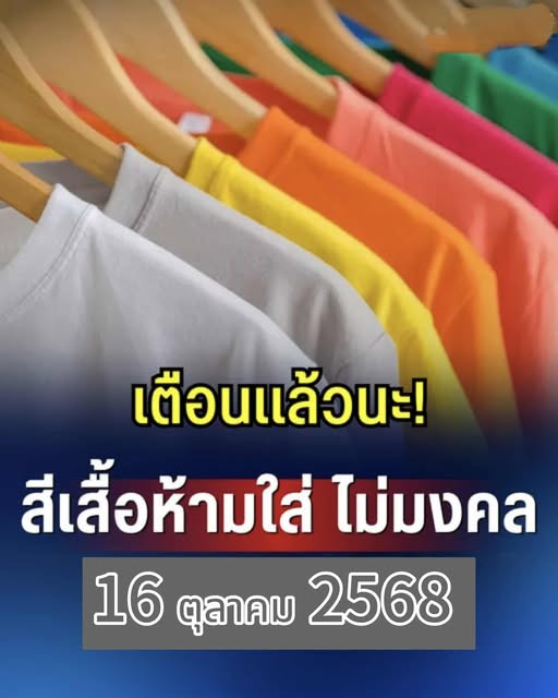 เดี๋ยวจะหาว่าไม่เตือน! สีเสื้อควรเลี่ยง 16 ตุลาคม 2568 (ความเชื่อส่วนบุคคล)