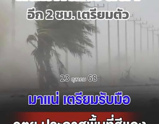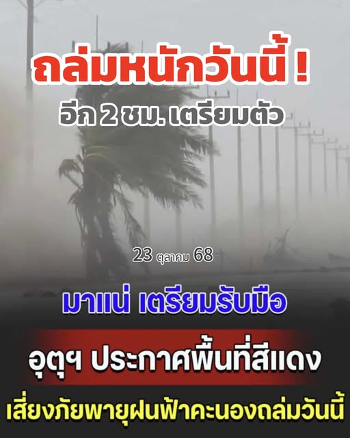 วันที่ 23 ต.ค. 2568 พยากรณ์อากาศ 24 ชั่วโมงข้างหน้า ภาคใต้มีฝนตกหนักถึงหนักมากบางแห่ง เนื่องจากร่องมรสุมพาดผ่านภาคใต้ตอนกลาง ประกอบกับมรสุมตะวันออกเฉียงเหนือ พัดปกคลุมอ่าวไทยและภาคใต้ ขอให้ประชาชนบริเวณภาคใต้ โดยเฉพาะบริเวณจังหวัดนครศรีธรรมราช พัทลุง สงขลา และปัตตานี ระวังอันตรายจากฝนฟ้าคะนอง ฝนตกหนัก และฝนที่ตกสะสม