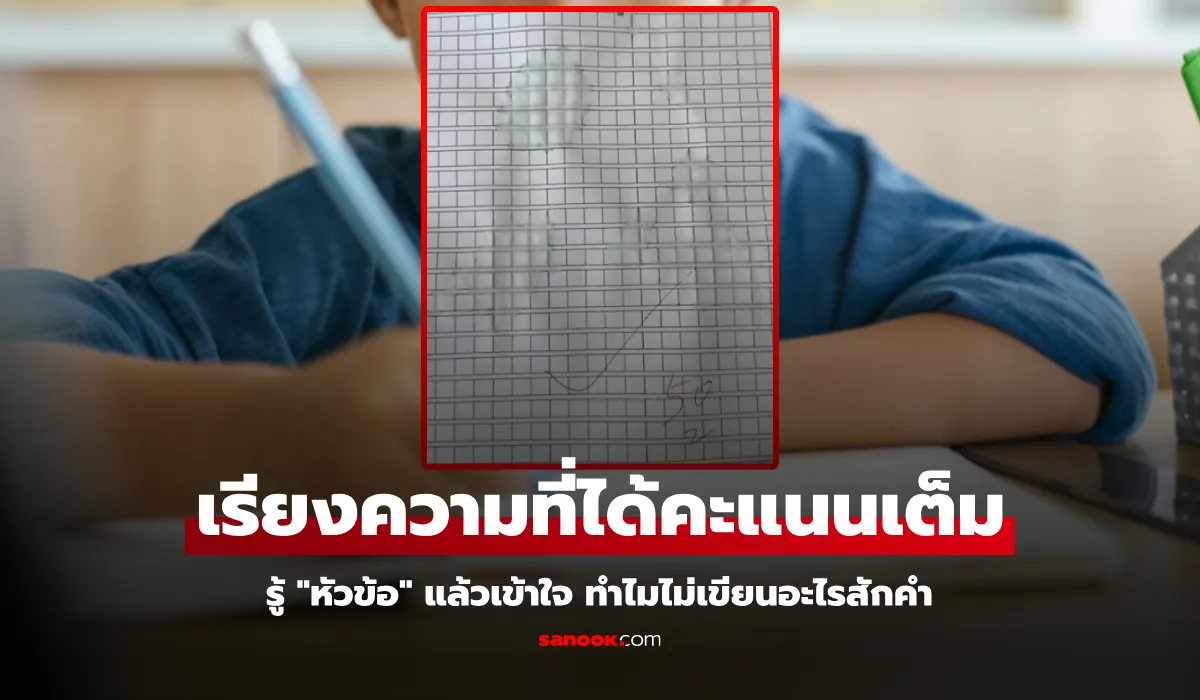 ยอมใจความฉลาด ด.ช.ไม่เขียนอะไรสักคำ แต่ครูให้คะแนนเต็ม รู้ “หัวข้อเรียงความ” ไร้เสียงค้าน