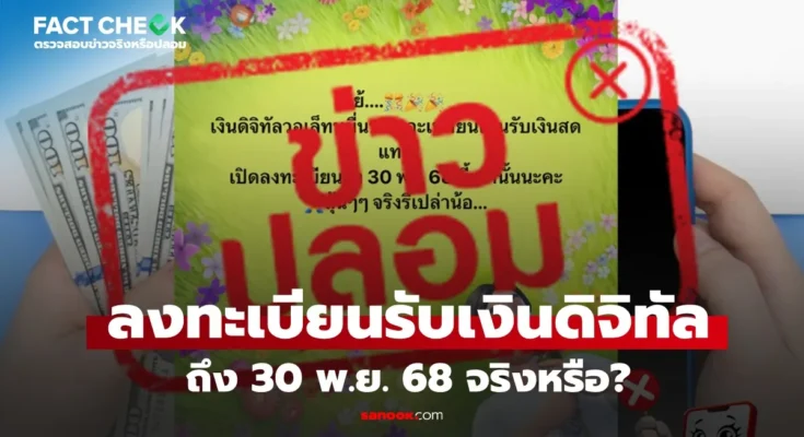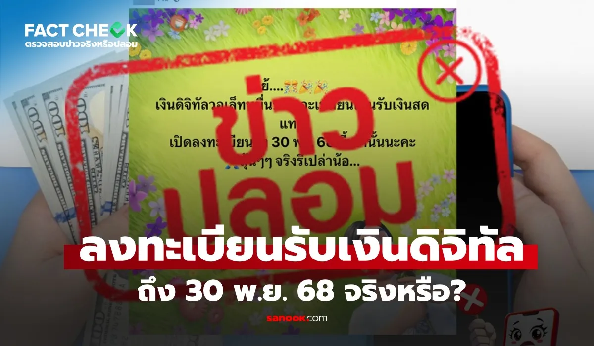 มีการแชร์ข้อมูลว่า รัฐบาลเปิดให้ลงทะเบียนรับเงินดิจิทัล 10,000 บาท ในรูปแบบเงินสด โดยสามารถลงทะเบียนได้จนถึงวันที่ 30 พฤศจิกายน 2568 ข้อเท็จจริงในเรื่องนี้เป็นอย่างไร?