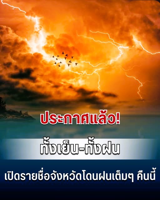 ประกาศแล้ว! 24 ชม. ข้างหน้า ทั้งเย็น-ทั้งฝน เปิดรายชื่อจังหวัดโดนฝนเต็มๆ คืนนี้