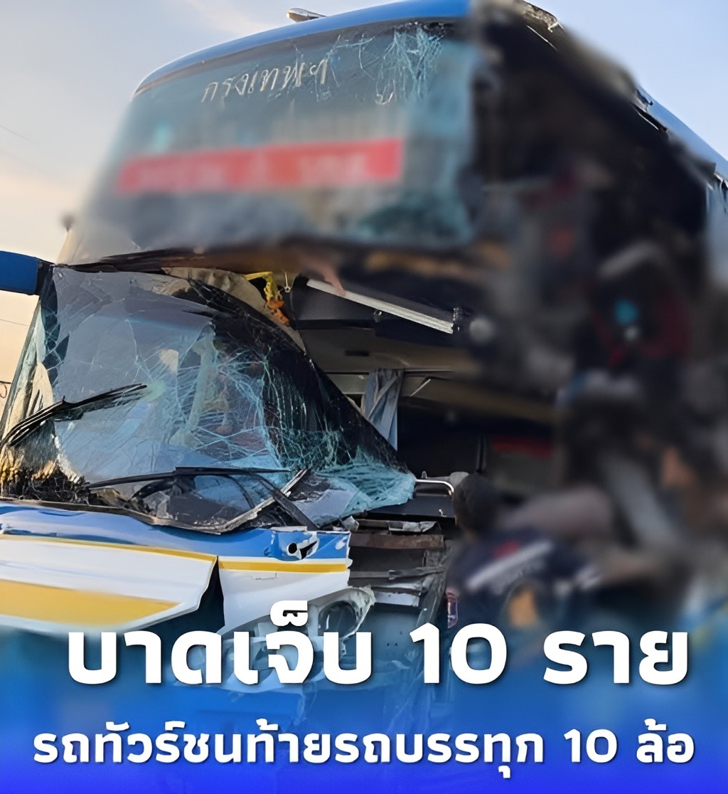 อุบัติเหตุรุนแรง รถทัวร์โดยสาร พุ่งเสยท้าย รถบรรทุก 10 ล้อ บนถนนเพชรเกษม(ขาเข้า กทม.) ผู้โดยสารบาดเจ็บเพียบกว่า 10 ราย