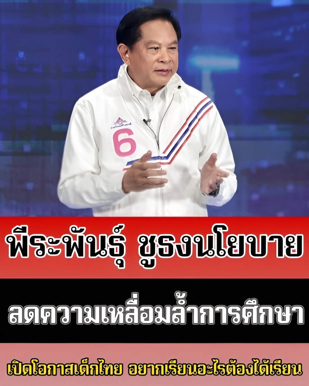 วันที่ 31 ม.ค. 69 นายพีระพันธุ์ สาลีรัฐวิภาค หัวหน้าพรรครวมไทยสร้างชาติ ให้สัมภาษณ์ในรายการ “เจาะสนามเลือกตั้ง 69” ทาง TOP NEWS ถึงนโยบายเรือธงของพรรครวมไทยสร้างชาติ โดยให้ความสำคัญที่การปฏิรูปโครงสร้างประเทศในระยะยาวผ่านการพัฒนาเด็กและเยาวชนควบคู่ไปกับการลดราคาพลังงานทั้งระบบ โดยระบุว่า นอกจากงานด้านพลังงานที่ต้องการเข้ามาทำให้เสร็จ งานด้านการศึกษาก็เป็นอีกสิ่งที่ต้องการเข้ามาบริหาร เนื่องจากกระทรวงศึกษาธิการเป็นกระทรวงที่มีความจำเป็นต่อการวางรากฐานประเทศในระยะยาว