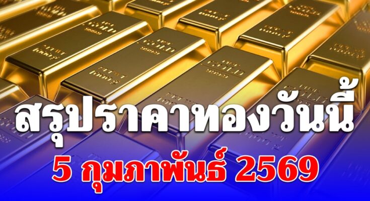 สรุปราคาทองวันนี้ 5 กุมภาพันธ์ 2569 หลังเช้านี้ สมาคมค้าทองคำ ประกาศราคาทองครั้งที่ 1 (เปิดตลาด) เมื่อเวลา 09.06 น. ปรับตัวลงแรง 1,200 บาท สู่บริเวณ 74,500 บาท
