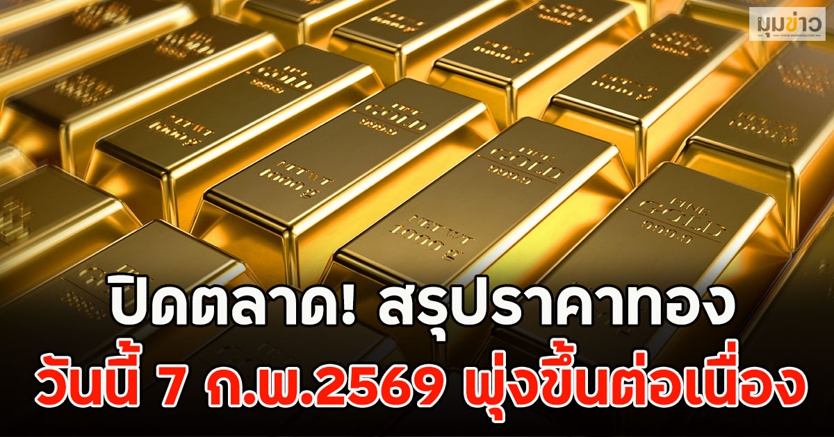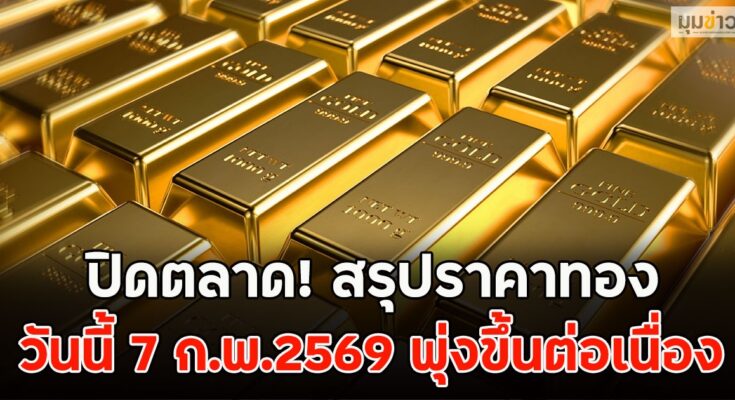 สรุปราคาทองวันนี้ 7 กุมภาพันธ์ 2569 ประกาศครั้งเดียว เมื่อเวลา 09.20 น. ปรับตัวเพิ่มขึ้นพรวดเดียว 1,400 บาท สู่บริเวณ 74,300 บาท