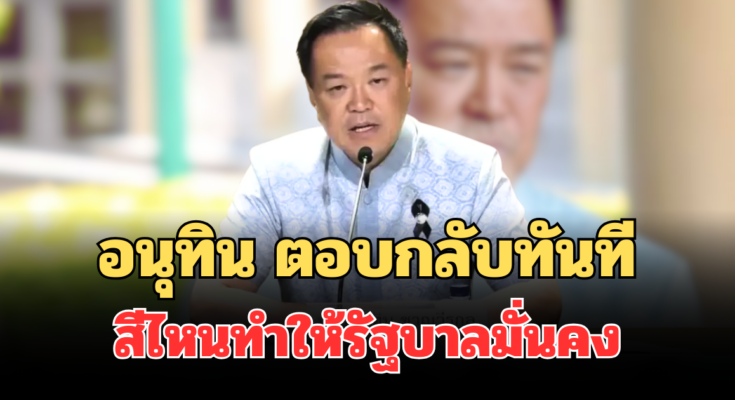เมื่อถูกถามถึงสูตรจัดตั้งรัฐบาลว่าจะรวมสีเขียวหรือสีแดง เพื่อให้เกิดเสถียรภาพ นายอนุทินกล่าวสั้นๆ ว่า สีธงชาติ