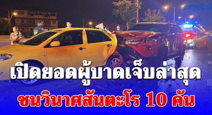 เปิดยอดผู้บาดเจ็บล่าสุด เหตุชนวินาศสันตะโร 10 คัน