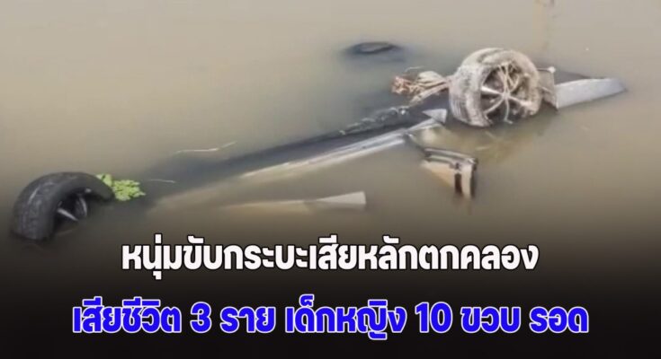 สุดเศร้า! หนุ่มขับกระบะเสียหลักตกคลอง เสียชีวิต 3 ราย เด็กหญิง 10 ขวบ รอดหวุดหวิด ชาวบ้านช่วยได้ทันการณ์