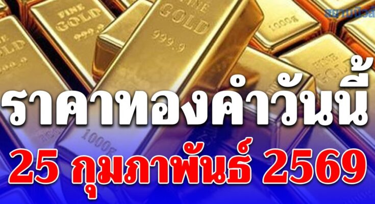 ราคาทองคำวันนี้ 25 กุมภาพันธ์ 2569 โดย สมาคมค้าทองคำ ประกาศราคาทองครั้งที่ 1 (เปิดตลาด) เมื่อเวลา 09.02 น. ปรับขึ้น 250 บาท สู้บริเวณ 75,950.00 ส่งผลให้ราคาทองคำล่าสุดอยู่ที่