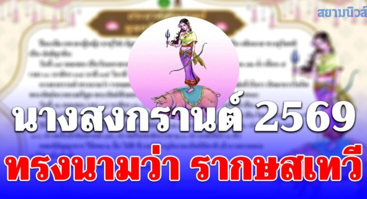 นางสงกรานต์ ทรงนามว่า “รากษสเทวี” ทรงพาหุรัด ทัดดอกบัวหลวง อาภรณ์แก้วโมรา ภักษาหารโลหิต พระหัตถ์ขวาทรงตรีศูล พระหัตถ์ซ้ายทรงธนู เสด็จยืนมาเหนือหลังวราหะเป็นพาหนะ
