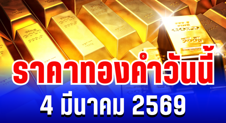 ราคาทองคำวันนี้ 4 มีนาคม 2569 โดย สมาคมค้าทองคำ ประกาศราคาทองครั้งที่ 1 (เปิดตลาด) เมื่อเวลา 09.04 น. ปรับตัวลดลงเเรงถึง 1,550 บาท สู่บริเวณ 77,700 บาท เมื่อเทียบกับประกาศราคาซื้อขายครั้งสุดท้ายของเมื่อวาน (วันอังคาร) ที่ระหว่างวันมีการประกาศราคาทองคำทั้งหมด 58 ครั้ง รวมราคาปรับตัวลดลง 1,000 บาท