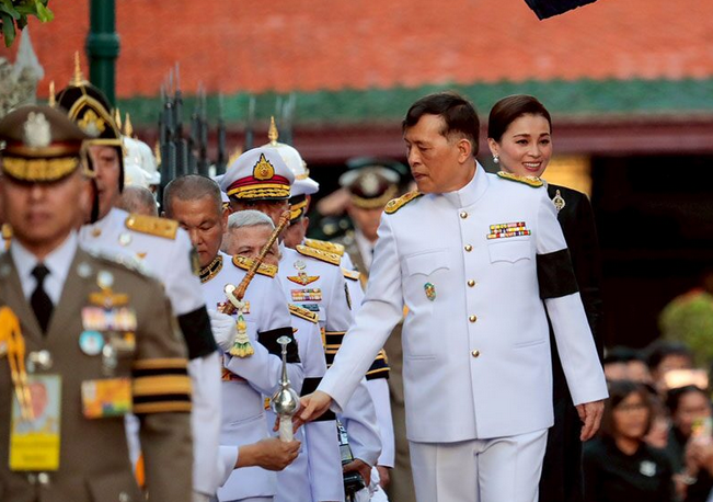 เสด็จพระราชดำเนินไปที่ฐานชุกชี ทรงวางกระทงดอกไม้บนพานหน้าฐานชุกชี ทรงจุดธูปเทียนเครื่องนมัสการท้ายที่นั่ง และทรงจุดเทียนห่วงบูชาพระพุทธมหามณีรัตนปฏิมากร ทรงคม จากนั้น ทรงจุดธูปเทียนเครื่องนมัสการท้ายที่นั่งบูชาพระพุทธยอดฟ้าจุฬาโลกย์ และพระพุทธเลิศหล้านภาไลย ทรงคม เสร็จแล้ว