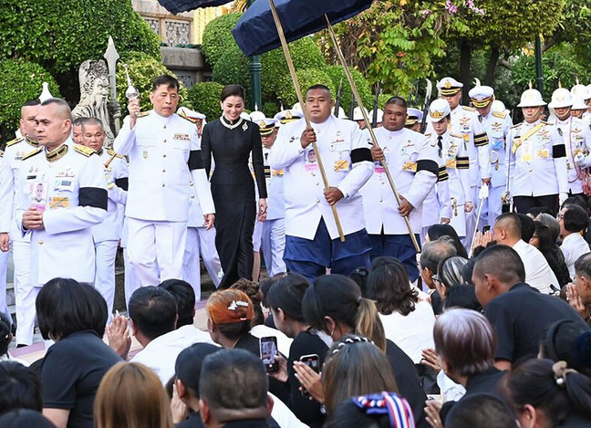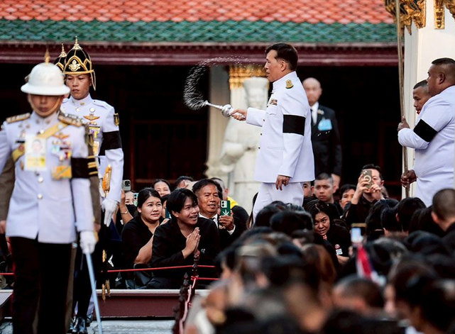 พระบาทสมเด็จพระเจ้าอยู่หัว และสมเด็จพระนางเจ้า ฯ พระบรมราชินี เสด็จพระราชดำเนินไปทรงกราบที่หน้าเครื่องนมัสการ ทรงรับการถวายความเคารพของผู้มาเฝ้าทูลละอองธุลีพระบาท แล้วเสด็จออกจากพระอุโบสถ ทรงพระสุหร่ายน้ำพระพุทธมนต์ที่สรงพระพุทธมหามณีรัตนปฏิมากรแก่ประชาชนที่มาเฝ้าทูลละอองธุลีพระบาท จากนั้นประทับรถยนต์พระที่นั่ง เสด็จพระราชดำเนินกลับ